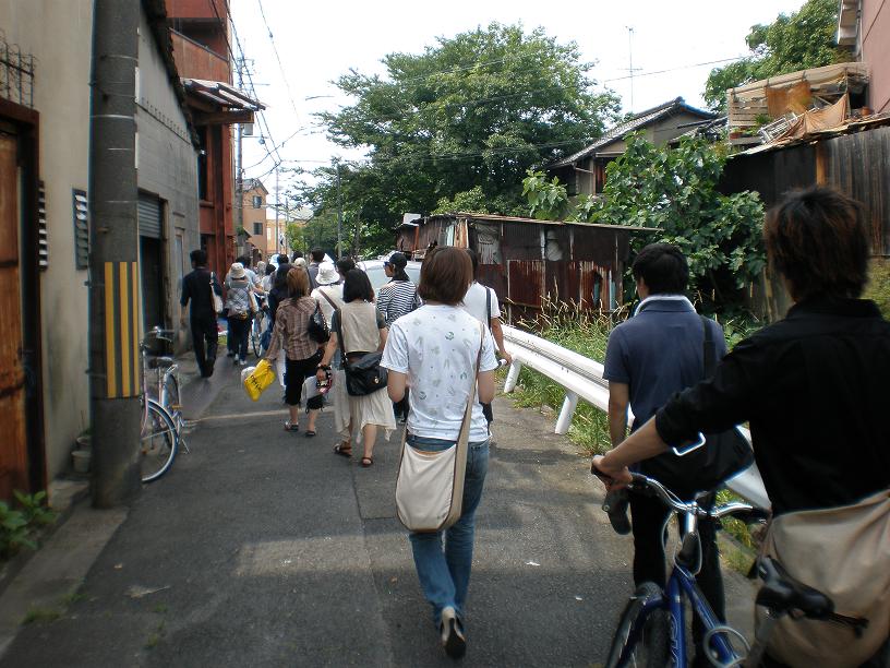 朝鮮学校を出発し、実際に東九条を歩きながら勉強しました。