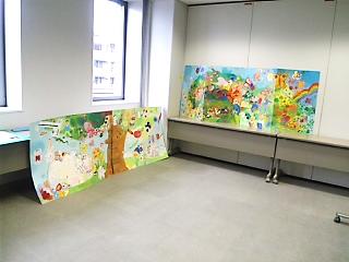 左の「平和の木」は、いろんな生き物がとりまいてるんですが、これも個性あふれる共同作です。