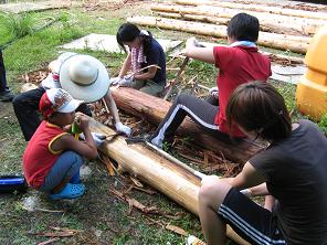 今回は土砂で埋もれた水路の掃除と丸太の皮むき作業を行いました。