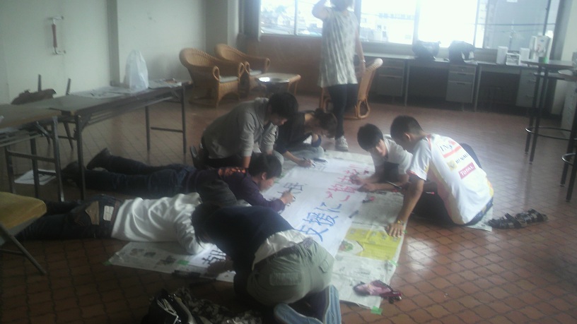 当日に使う垂れ幕や募金箱を